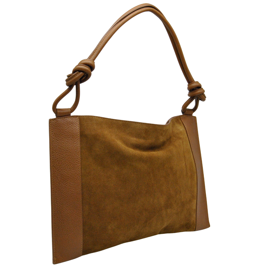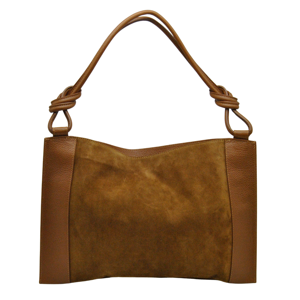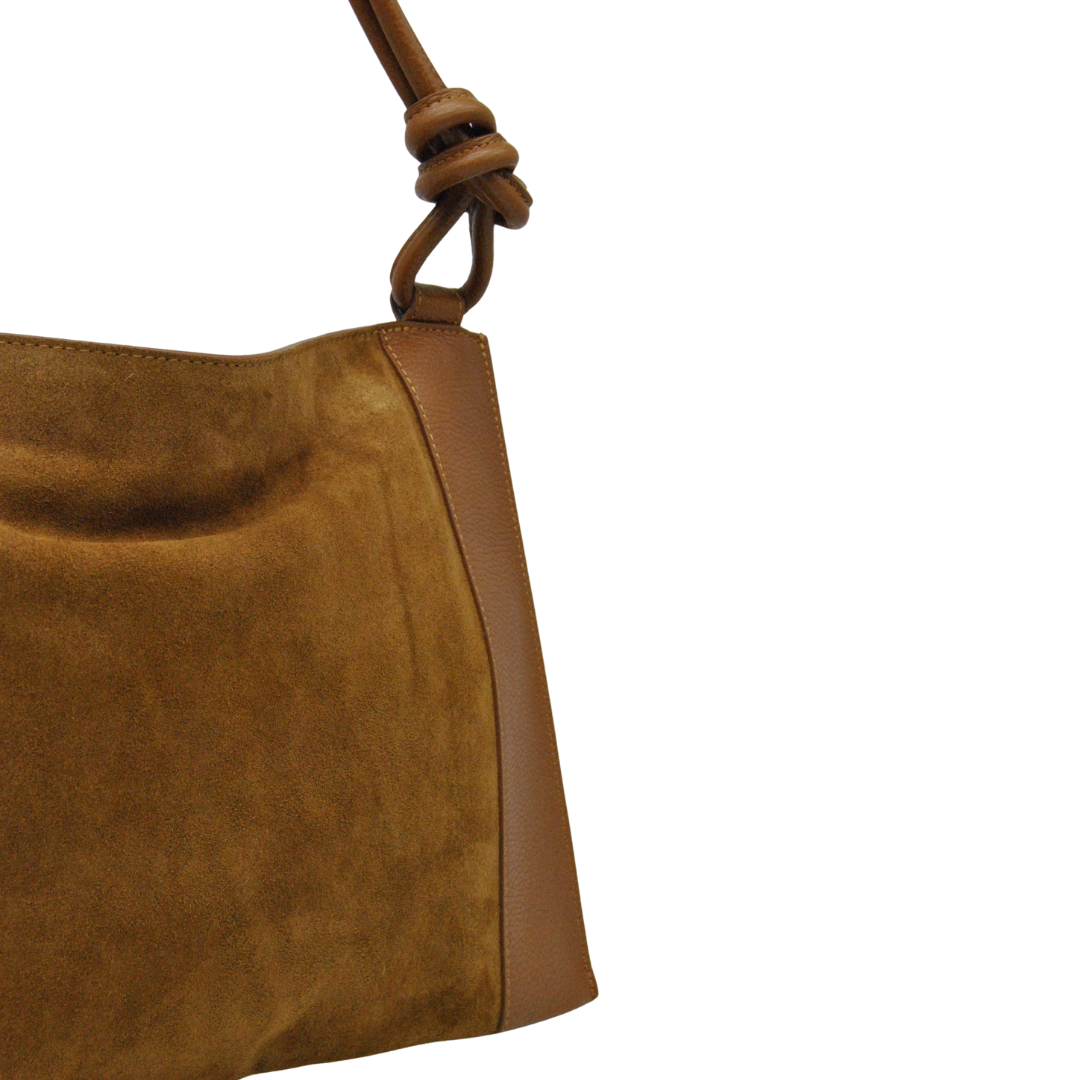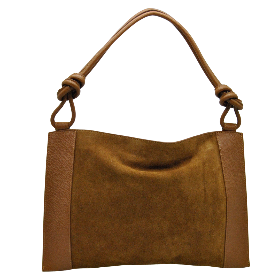 Sac en daim avec empiècements en cuir.