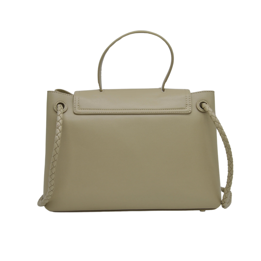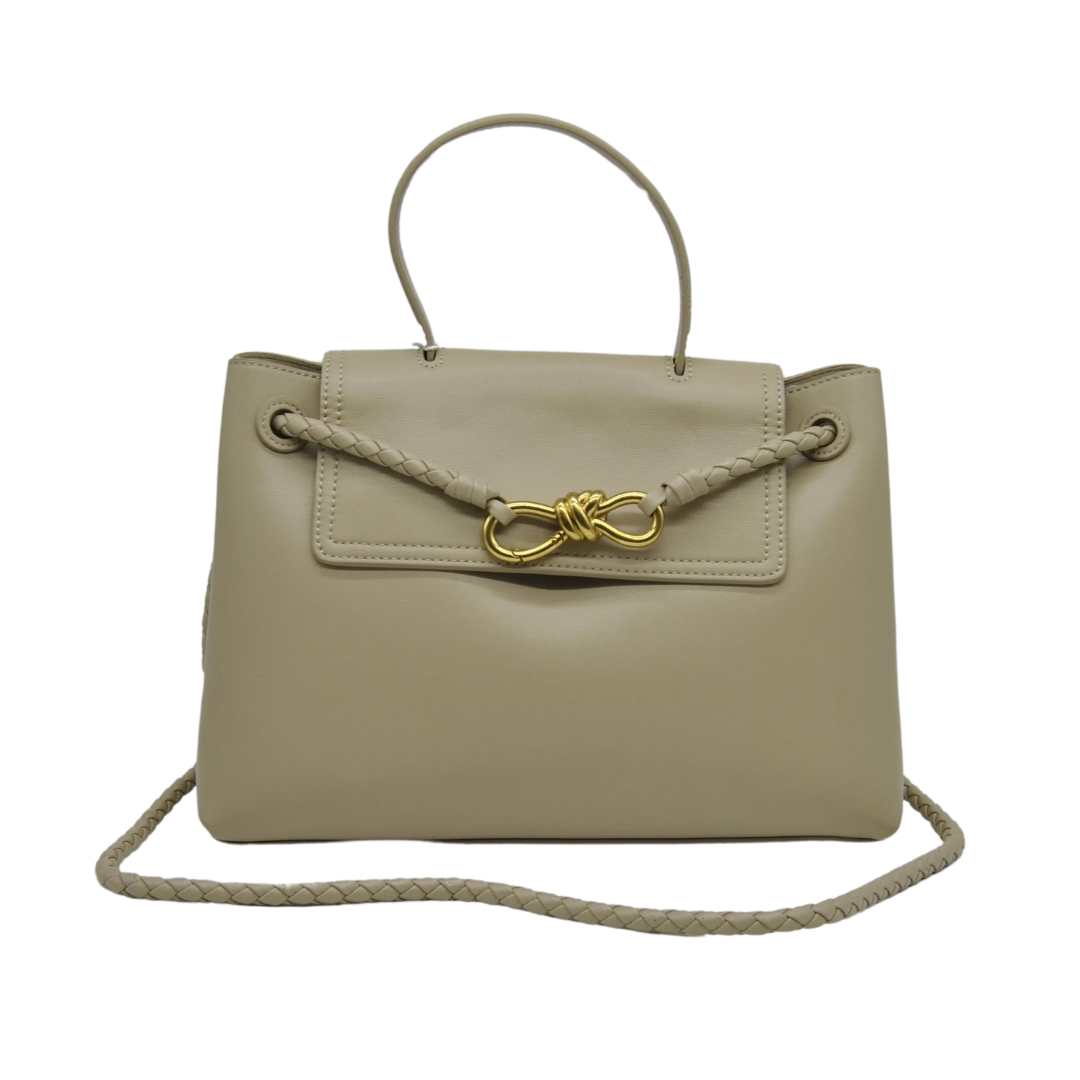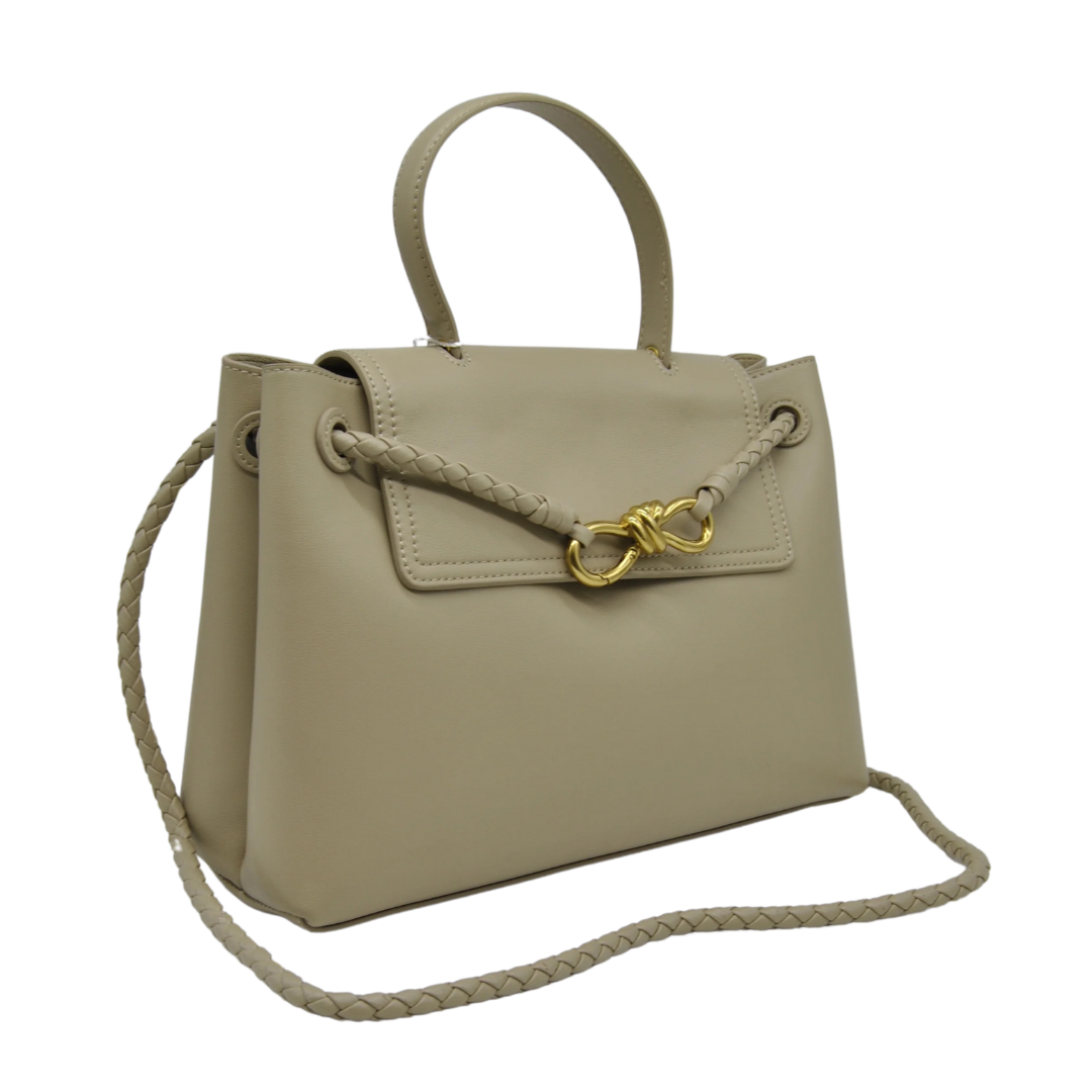 Poignée, doubles anses tressées pour le porter à l’épaule avec confort, ou en bandoulière d’un côté pour un style plus décontracté.