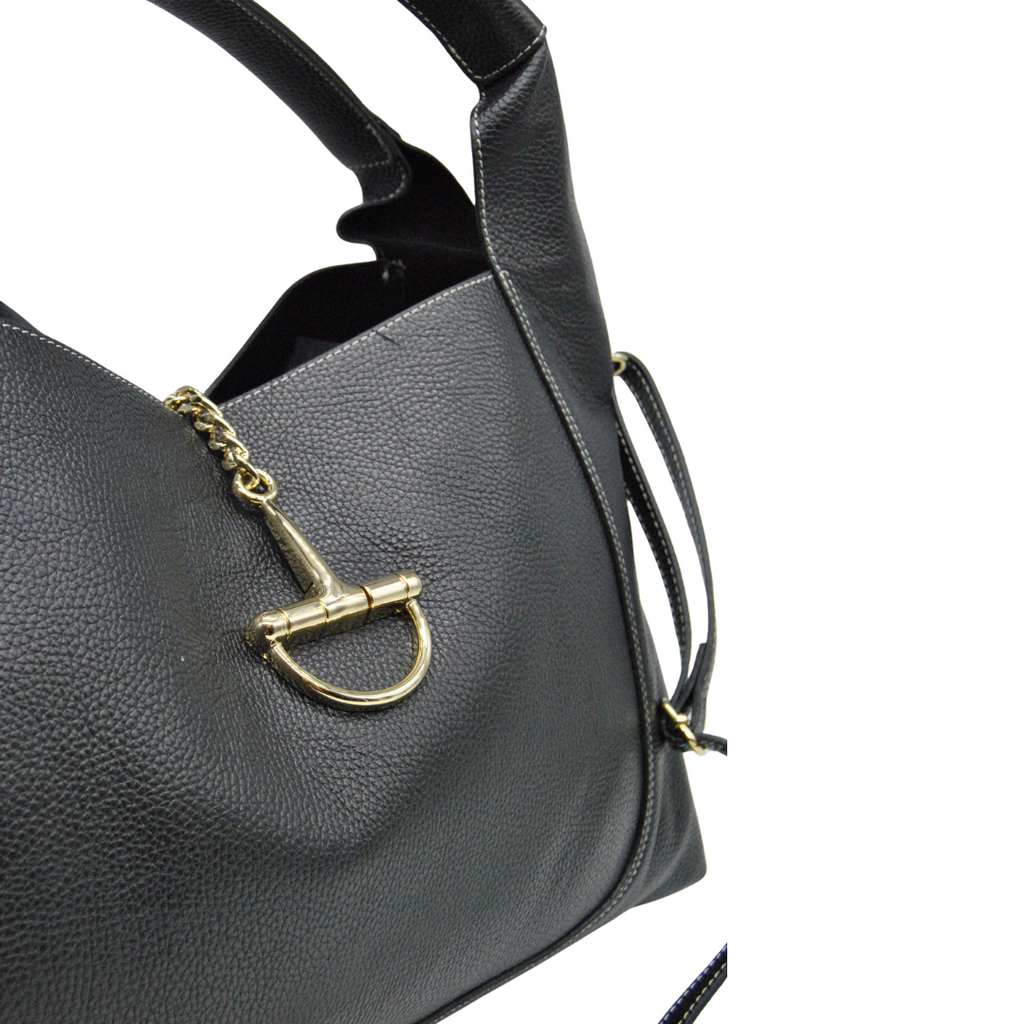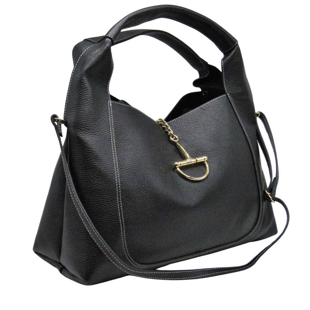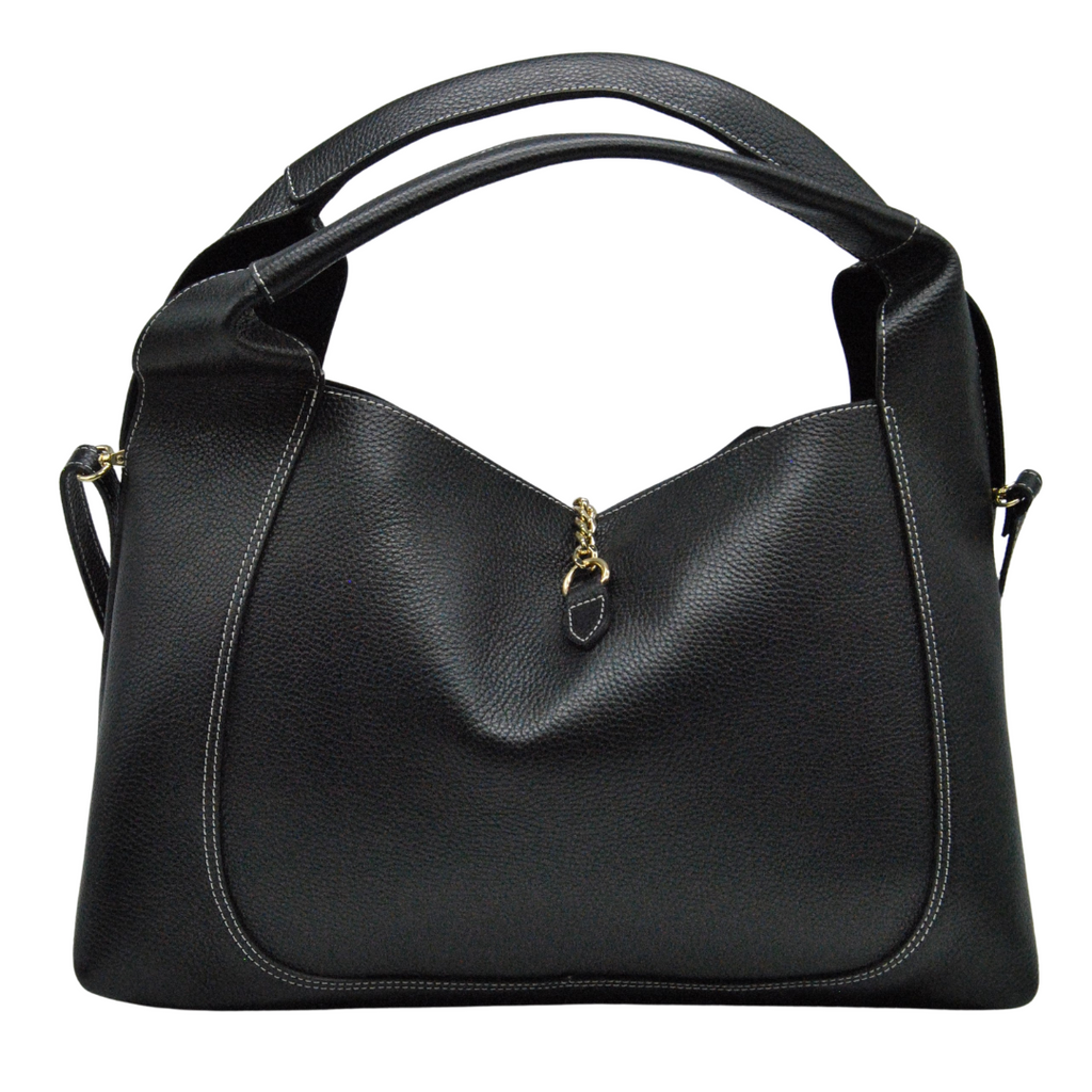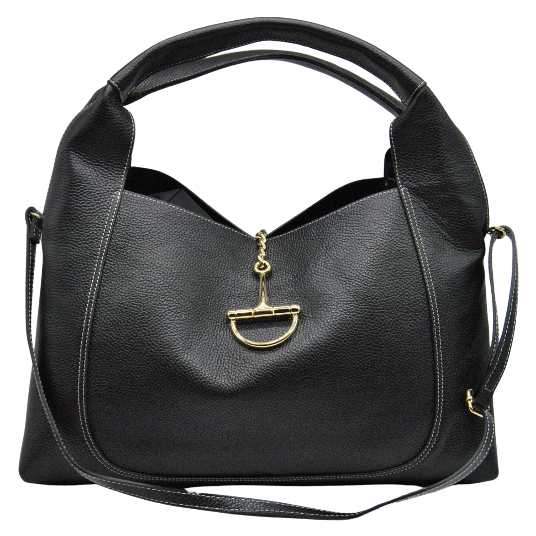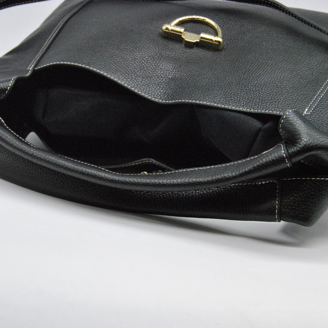 Sac en cuir, deux grandes poignées retournées et bandoulière réglable.