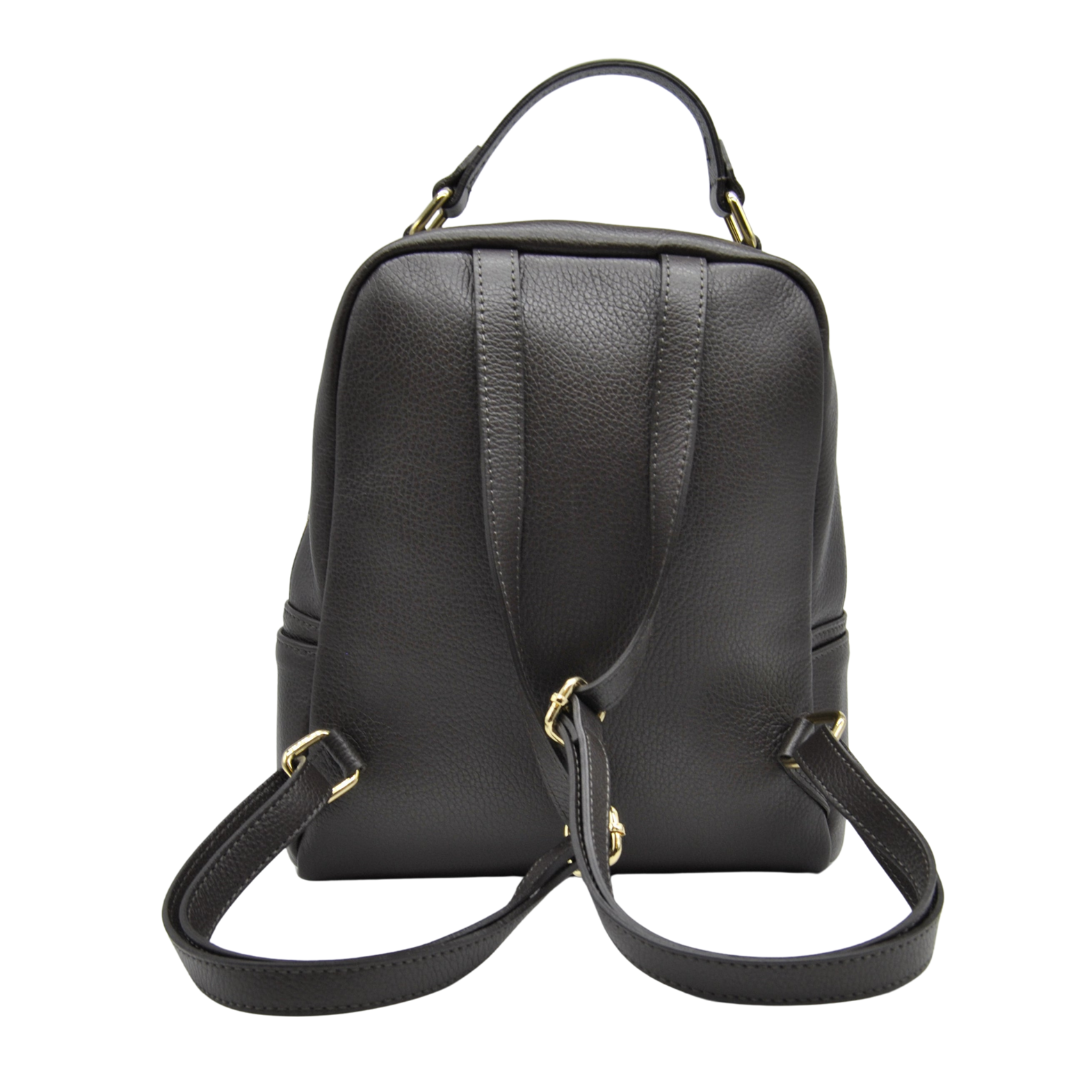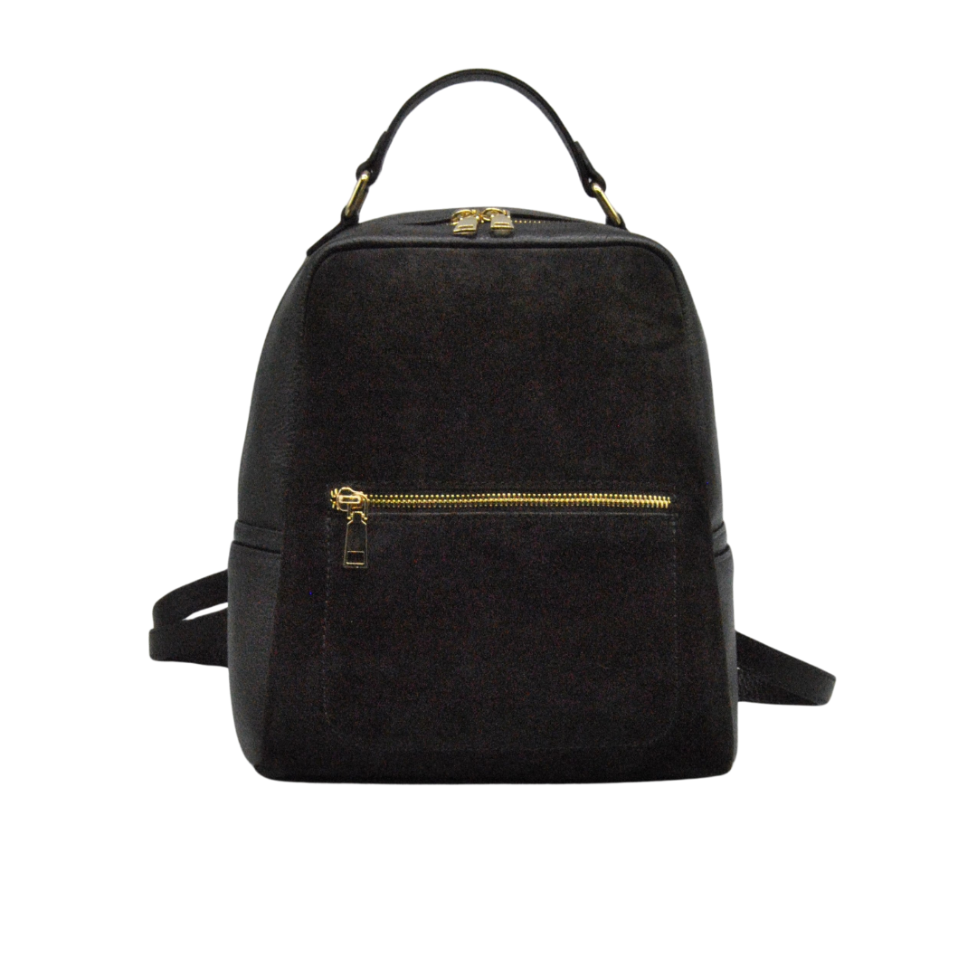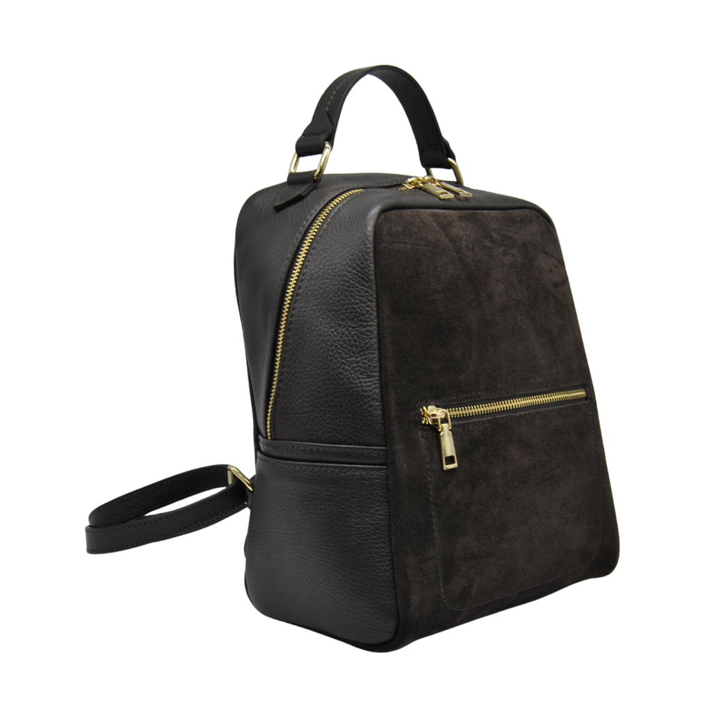 Sac à dos en cuir avec insert en daim et poignée.