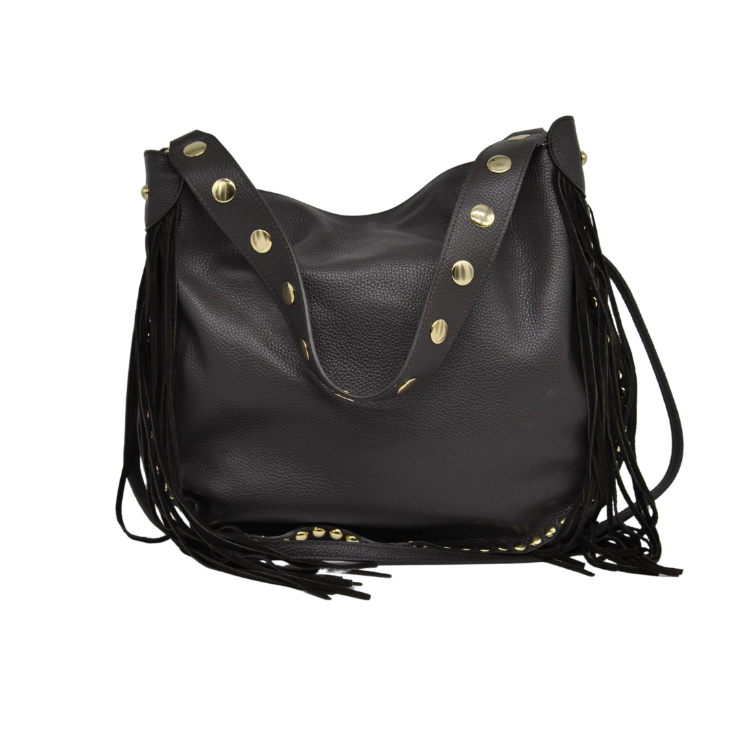 Grande bandoulière avec clous, bandoulière réglable, franges sur les côtés.