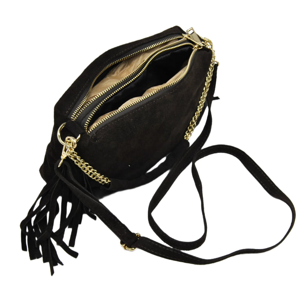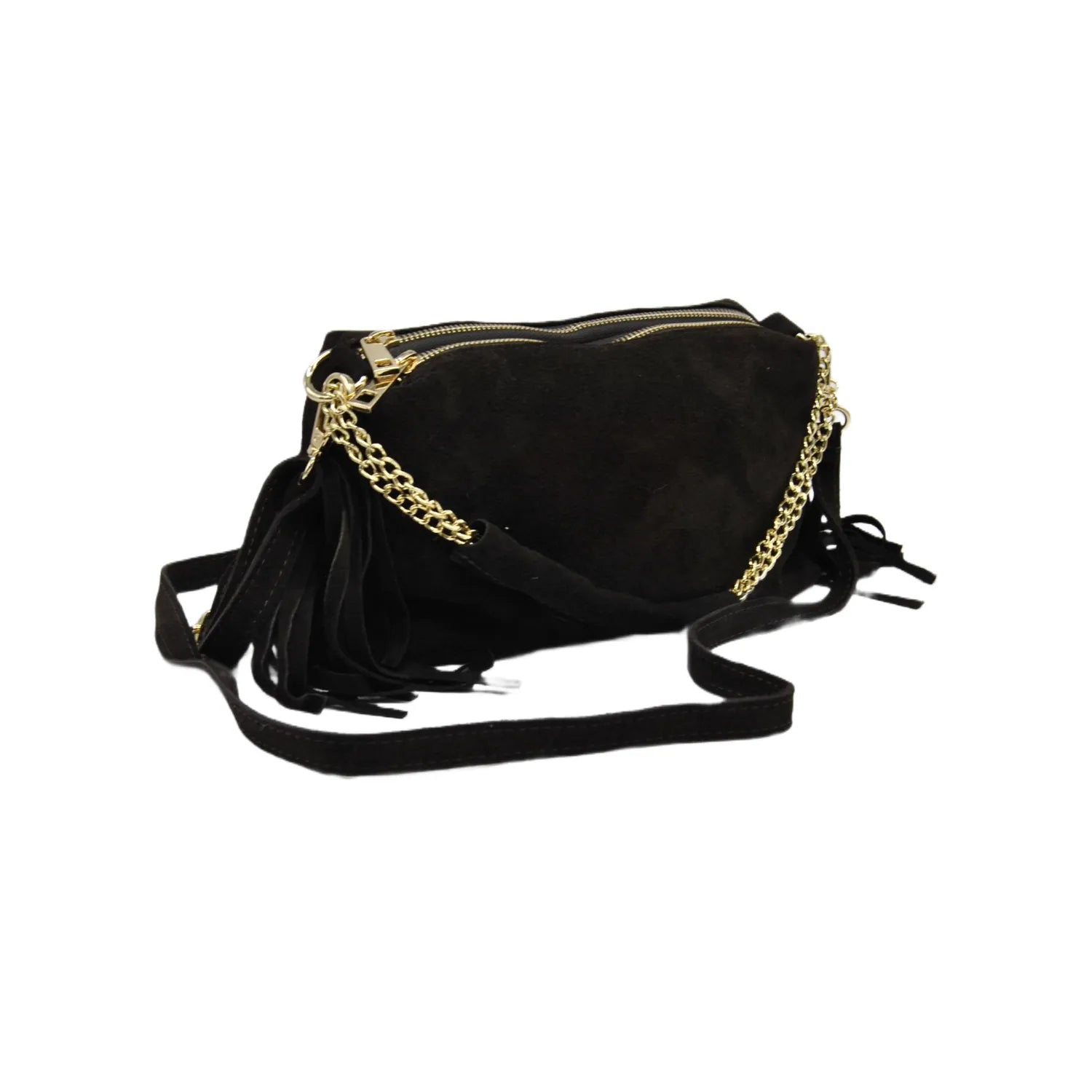 Sac en daim, poignée avec double chaîne et insert en daim.